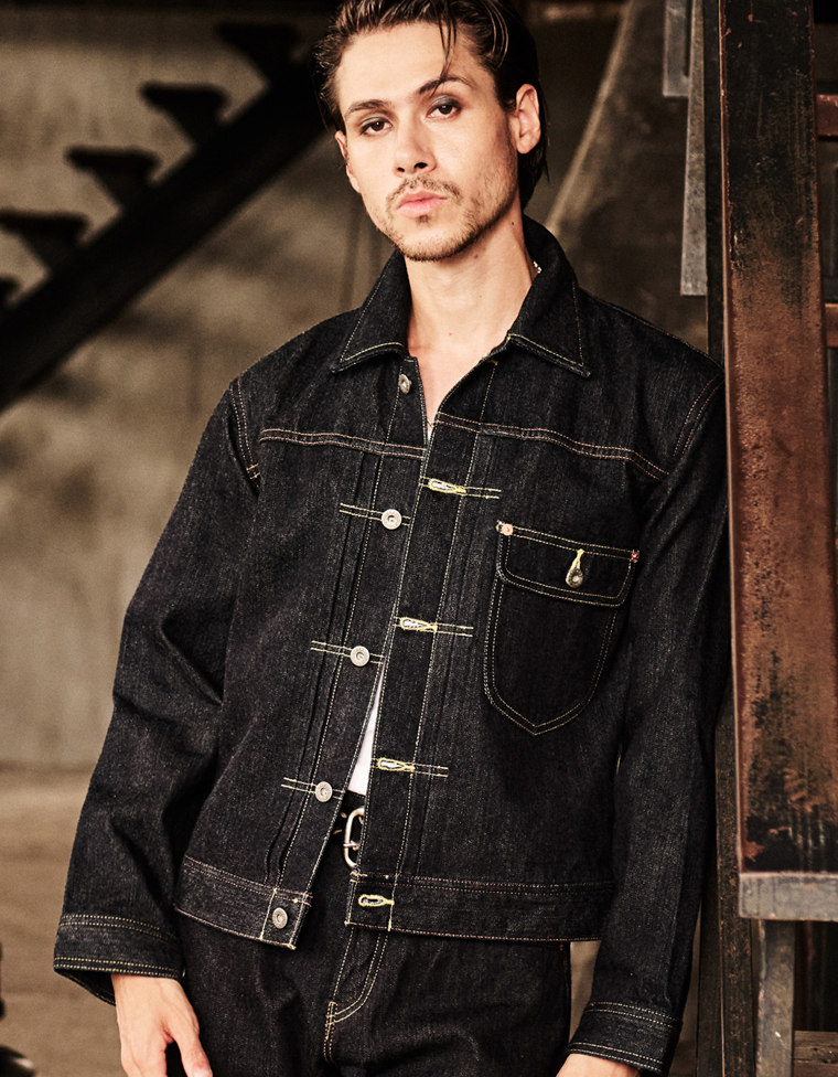 12.5oz 加工ブラックデニムジャケット - 40's モデル -
