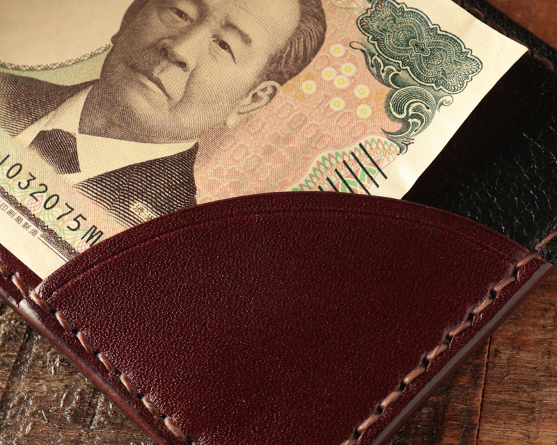 スリット状のポケットにお札の端を差し込むことでお札の広がりやバラつきを抑えてスッキリと収納することが可能な作りに仕上げています。