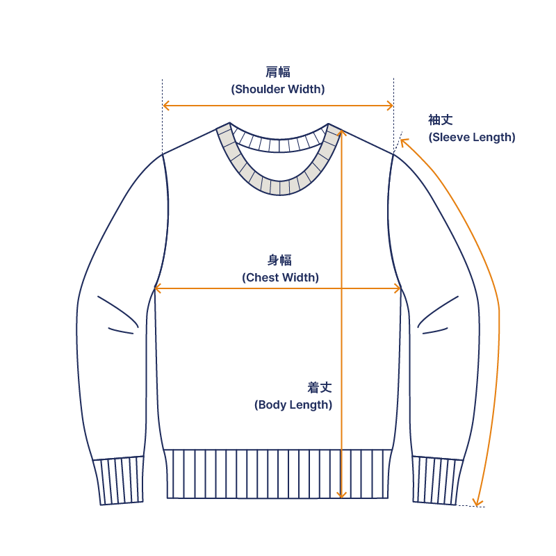 袖やリブの縫製部分は編み目と編み目を合わせて、生地の持つ伸縮性に合わせて縫製部分もの伸縮するように仕上げています。 着用時に縫製部分のテンションなども生地に合わせて伸縮するので締め付け感も無く、快適に着用して頂けます。