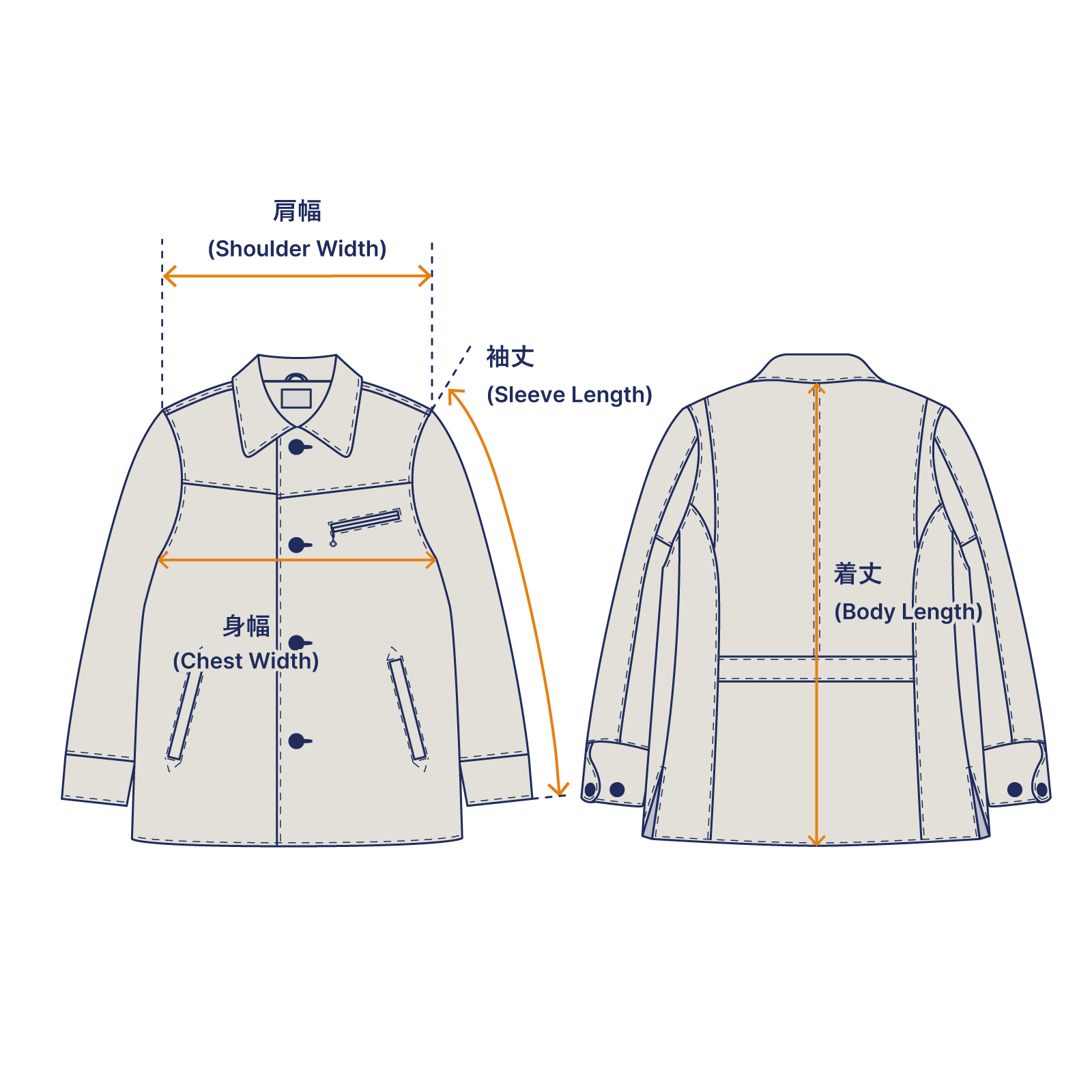 また、左右の前身ごろには片玉縁の内ポケットがあり、大型のスマートフォンも収まる収納力があります。