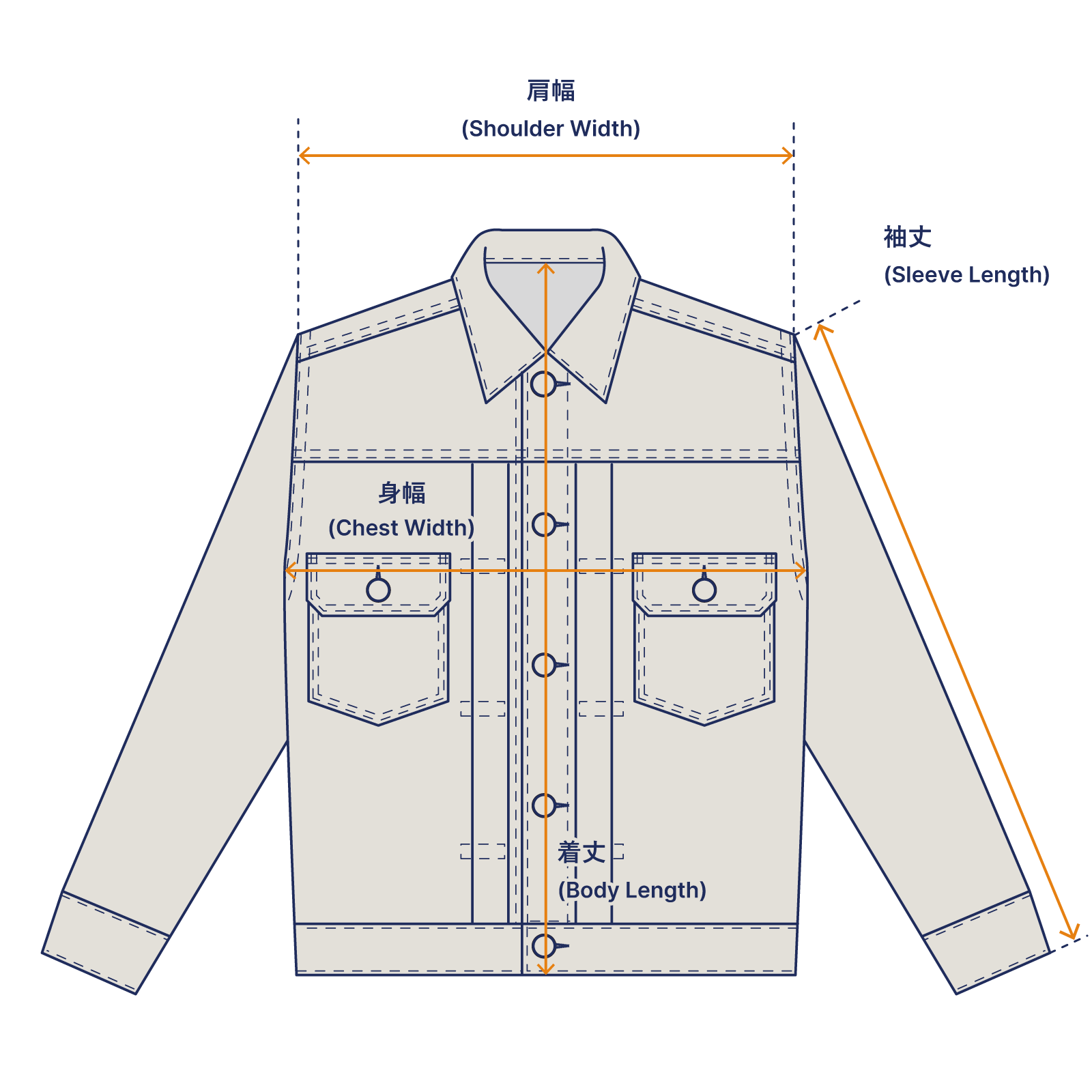 ボタンにはオリジナル鉄製ボタンを使用。 防錆加工を施すことで一般的な茶色い錆が出ず、擦れるところは光沢が増し、窪んだ部分は黒みを増し、陰影のある表情へと変化していきます。 カフス部分にはオリジナルのリベットも使用し、独自性のあるディテールに仕上げています。