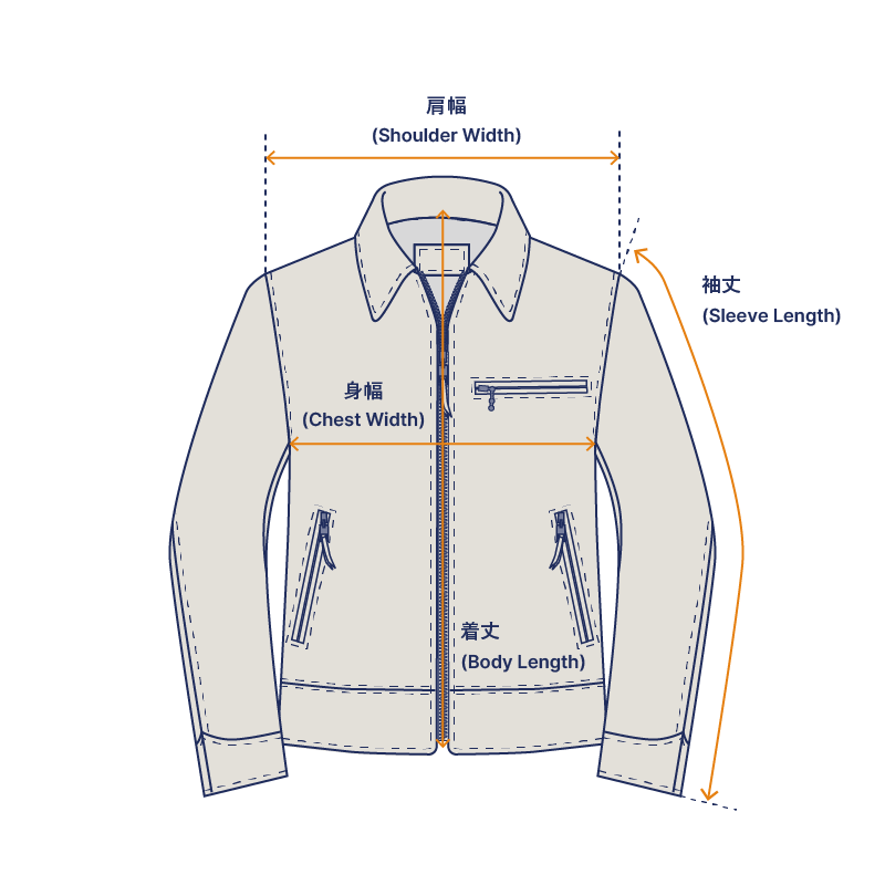 左胸のポケットには菱形のチェーンジッパーを使用しています。