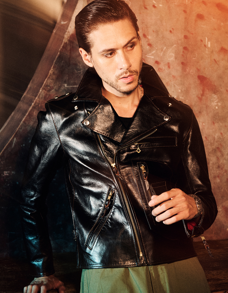 1950年代のヴィンテージレザージャケットの雰囲気を表現するため、袖にジッパーは付けずカフスのみのデザインににしています。ヴィンテージレザージャケットのようなクラシカルな雰囲気が魅力のジャケットに仕上げています。