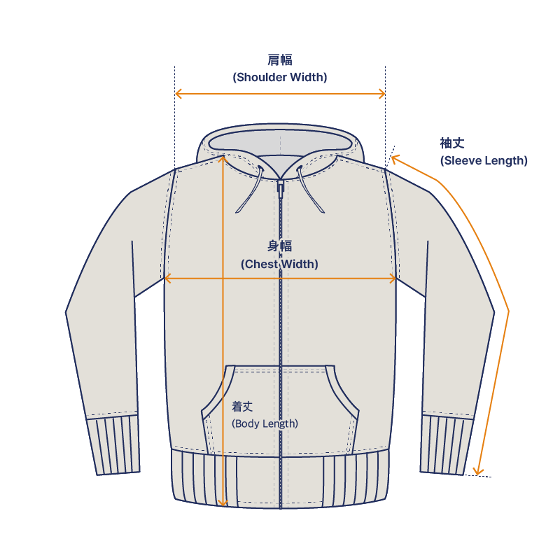 ・COTTON100%・吊り生地・丸胴・裏起毛・主要部2本針縫製・UNIVERSAL ZIPPER・左袖:ネーム・ワンウォッシュ・カラー:ブラック / グレー / マスタード・サイズ:36(S) / 38(M) / 40(L) / 42(XL)
