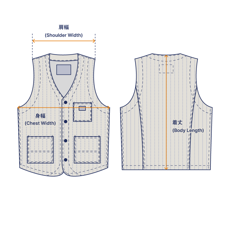 【ヴィンテージ感のあるウォバッシュワークベスト】 ワークウエアには欠かせない人気の生地ウォバッシュを使用したワークベスト。 濃色に染め上げた10ozデニム生地に施された白いドット柄が特徴的です。 ドット柄は抜染プリントにより、脱色を行った後にしっかりと色を染めこんでいるので色落ち後もしっかりとドット柄が残ります。 オリジナルの加工レシピがある特別なウォバッシュ生地はもちろん、縫製や使用するパーツにもヴィンテージワークウエアのディテールを意識した作り込みをしています。