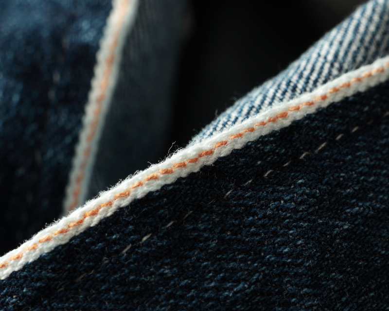 タテ糸、ヨコ糸ともにムラ糸を使用し、旧式シャトル織機で製織することで、生地表面に現れる独特なムラ感を強く仕上げたオリジナルの12ozデニム生地。経年変化が進むと、生地のムラ感が生み出す表情が色濃く現れます。 特濃色に染め上げたタテ糸はフラットヘッドのデニムらしい濃淡のハッキリとした色落ちを生み出すので、着用とともに変化していくデニムの表情を存分に楽しめます。