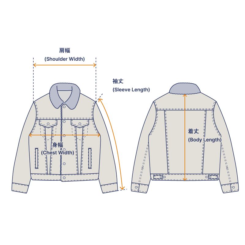 ・COTTON100% ・表地:12.5ozデニム(旧式シャトル織機)・裏地:POLYESTER78% ACRYLIC22%・オリジナルボタン・フェード加工・カラー:ブルー・サイズ:36(S) / 38(M) / 40(L) / 42(XL) / 44(XXL)