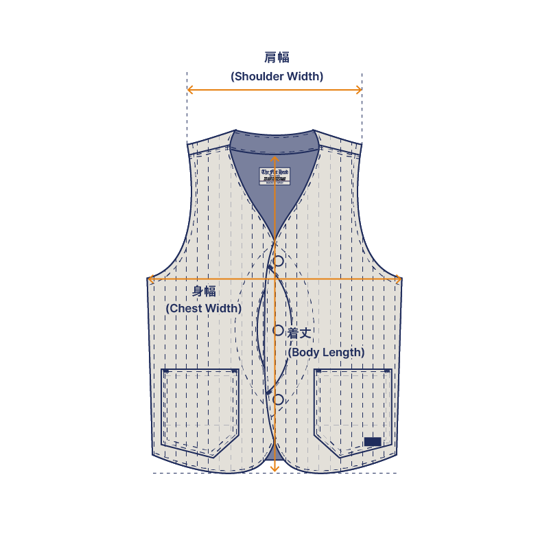 1930~1940年代のハンティングベストをベースにしたコットンベスト。 着用時にスッキリとしたシルエットでスタイリッシュなベストに仕上げました。