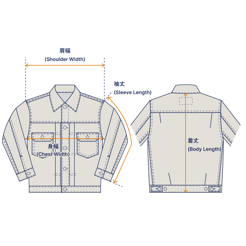 ・14.5ozデニム(旧式シャトル織機)・鉄製ボタン・オリジナル銅製リベット・革パッチ(牛革)・主要部巻き縫い・ワンウォッシュ・カラー:ブルー・サイズ:36(S) / 38(M) / 40(L) / 42(XL) / 44(XXL) / 46(XXXL) / 48(XXXXL)