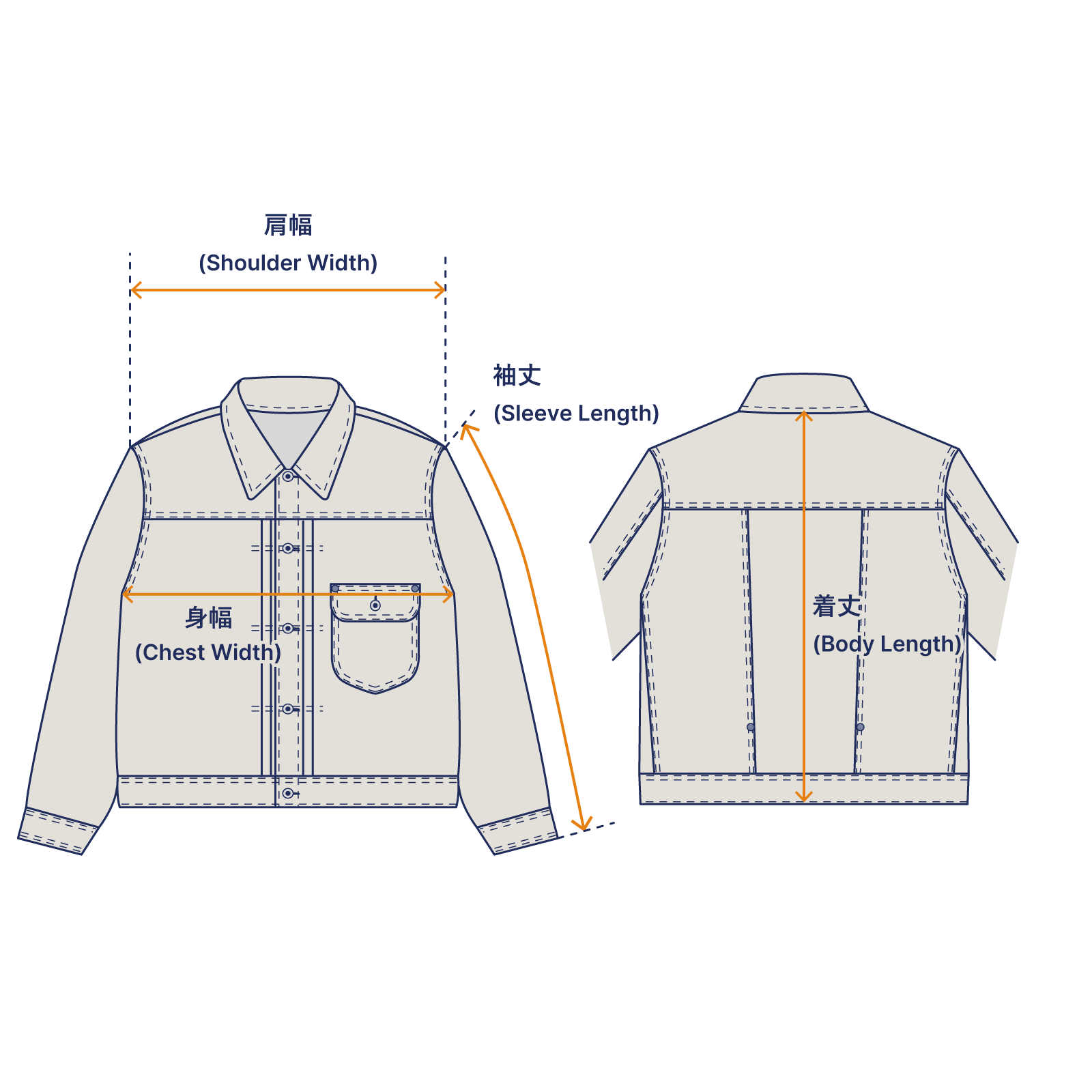 ・14.5ozデニム(旧式シャトル織機)・ジンバブエコットン・鉄製ボタン・オリジナルリベット・主要部巻き縫い・サイズ:36(S) / 38(M) / 40(L) / 42(XL) / 44(XXL)・カラー:ブルー