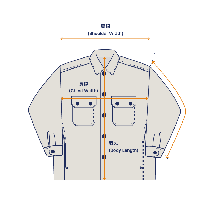 ボタンにはミリタリー感のあるイカリのデザインが施された尿素ボタンを使用。 本来のCPOジャケットの雰囲気をディテールで残しつつ、現代風なカジュアルジャケットに仕上げています。
