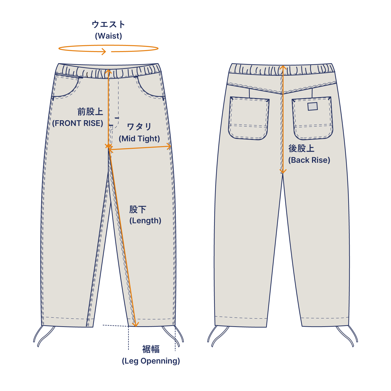 裾部分にはドローコードが備わっています。 暑い夏に裾をまくって着用する際にドローコードで裾幅を調整することで涼しげに着用することも可能です。