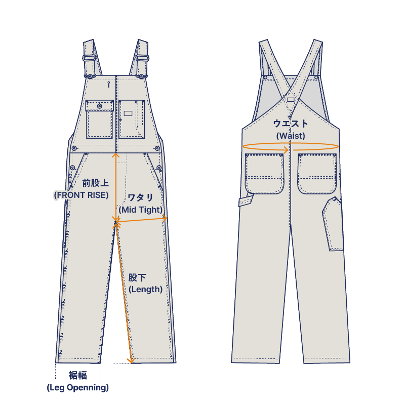 古着などでもジャケットやパンツでよく目にする「ダック生地」。 旧式シャトル織機で織り上げたダック生地はコシがあり、色落ちなどの経年変化も楽しめます。 ワークウエアのディテールも随所に落とし込んだオリジナルオーバーオールに仕上げています。
