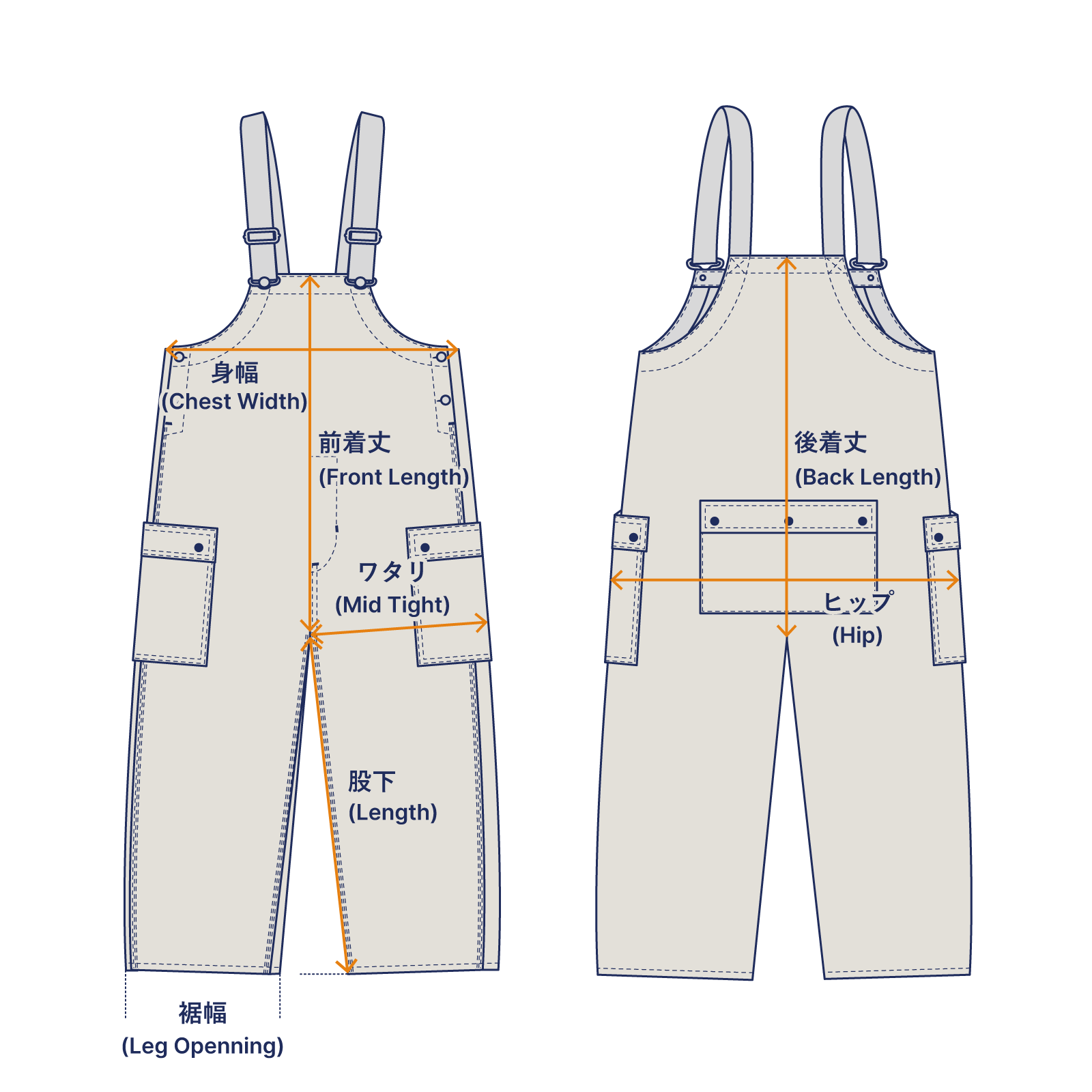 ミリタリーアイテムのデッキパンツとオーバーオールをかけ合わせた新デザイン。 肉厚な生地にトリプルステッチとワークテイストもありつつ、両サイド、腰部分に付属した大きなフラップポケットがデッキパンツのテイストを感じさせるディテールです。