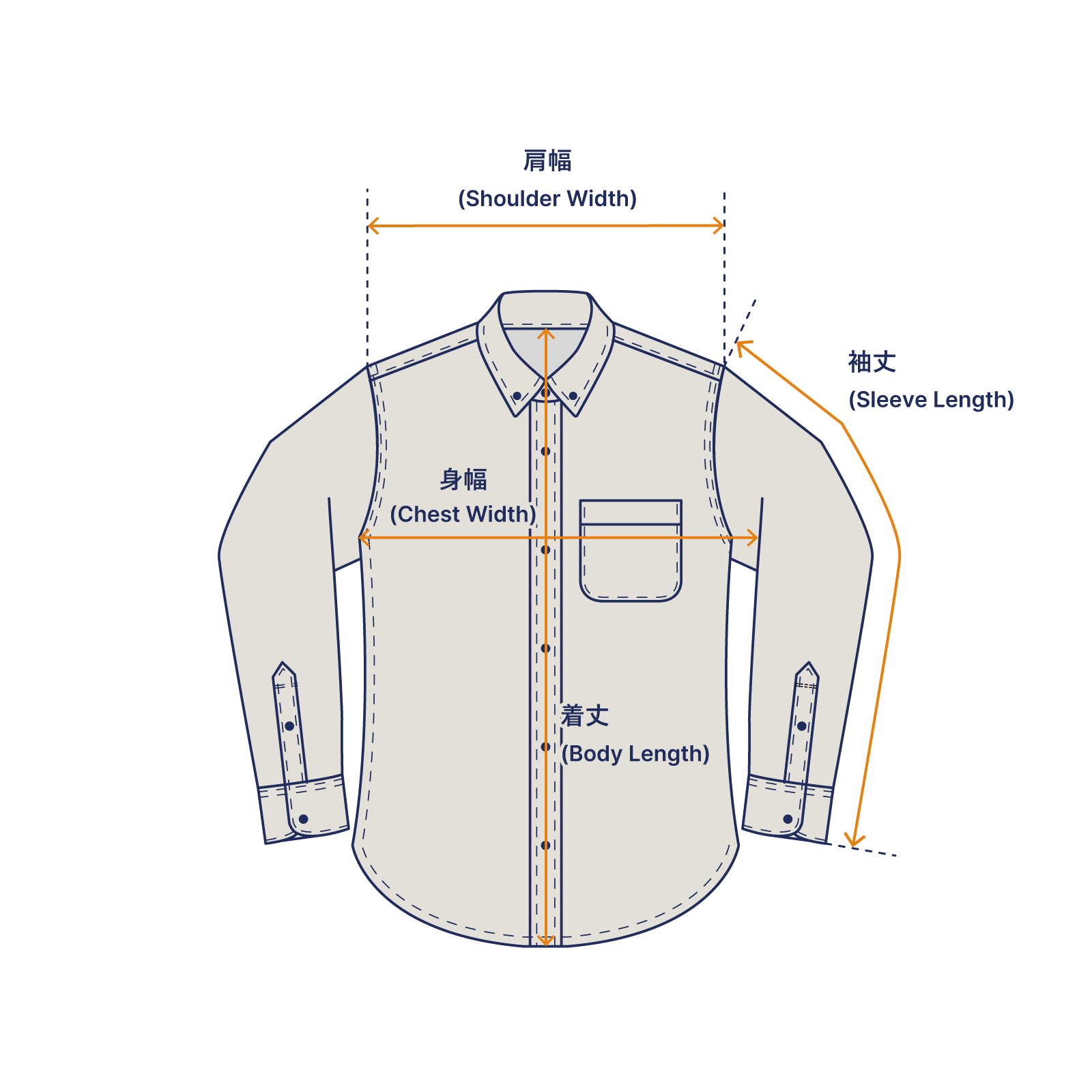 生地は旧式シャトル織機を用いて高密度に織り上げられた綾織り生地を使用。 カラーごとに使用する糸に特徴があり、ホワイトはコットンに含まれる脂肪質やたんぱく質などの不純物を綺麗に除去し、純白に仕上げた糸を使用。 ブルーはインディゴのロープ染色を施し、着用と共に経年変化を楽しめます。 ホワイト・ブルーでそれぞれセミフォーマルからカジュアルまで幅広いシーンで着こなせるボタンダウンシャツに仕上げました。