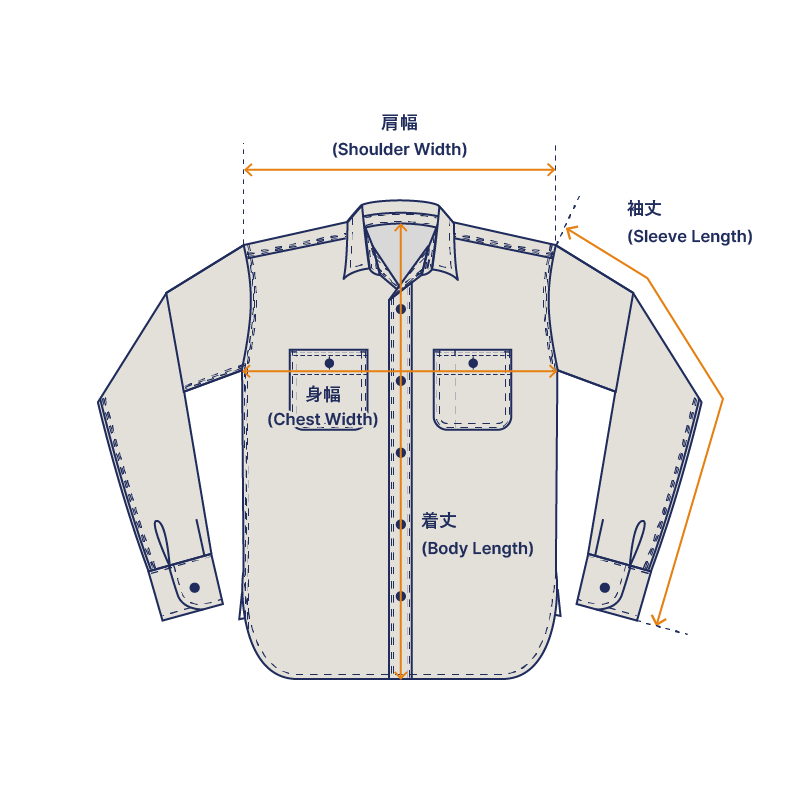 ・COTTON100%(旧式シャトル織機)・メタルボタン・主要部巻縫い(トリプルステッチ)・ワンウォッシュ・カラー:ホワイト・サイズ:36(S) / 38(M) / 40(L) / 42(XL) / 44(XXL)