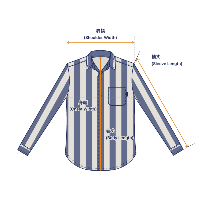 ボタンの重なり部分と、胸のポケット部分は柄合わせを行っています。 柔らかく丸まりやすい生地の柄合わせは熟練の技術が必要です。 柄合わせをすることで着用時のストライプ柄のまとまりがあり、スッキリとした印象で着用できます。
