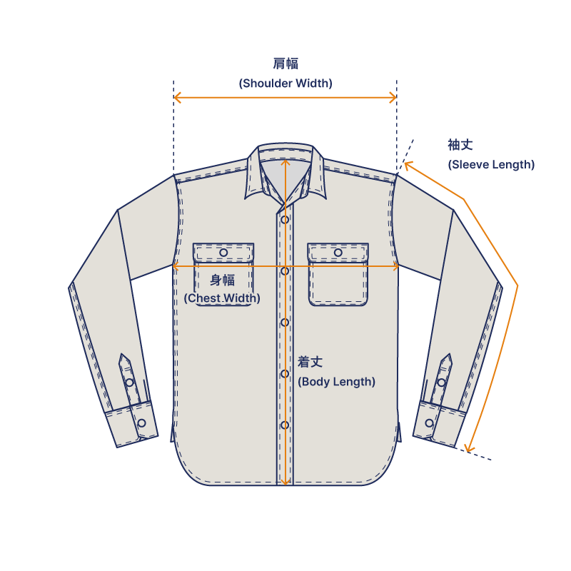 シャツを形作る上で重要な縫製部分には2本針のチェーンステッチミシンによる巻き縫い縫製を施しています。 生地を巻き込み縫い上げる巻き縫い縫製は、強度を高めるための工夫としてヴィンテージワークウエアにもよく見られる縫製技法です。 綿糸のチェーンステッチは生地と共に縫製糸も収縮するため、パッカリングと呼ばれる凹凸が生まれます。 着込むことで現れるパッカリングの風合いはヴィンテージ感を際立たせる重要な要素でもあります。