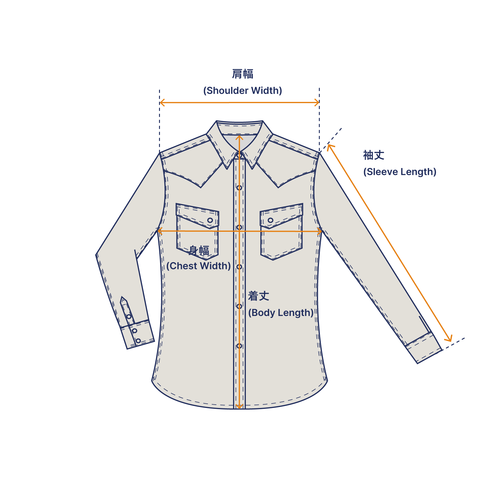 シャツを形作る上で重要な縫製部分には2本針のチェーンステッチミシンによる巻き縫い縫製を施しています。 生地を巻き込み縫い上げる巻き縫い縫製は、強度を高めるための工夫としてヴィンテージワークウエアにもよく見られる縫製技法です。 綿糸のチェーンステッチは生地と共に縫製糸も収縮するため、パッカリングと呼ばれる凹凸が生まれます。 着込むことで現れるパッカリングの風合いはヴィンテージ感を際立たせる重要な要素でもあります。