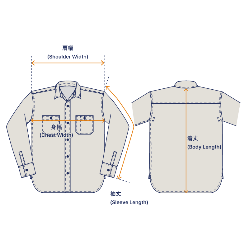 軽い着心地とと程よいコシ感が楽しめるオリジナルの10ozデニム生地で仕立てたワークシャツ。 旧式シャトル織機で織り上げげたムラ感のある生地は、はっきりとしたタテ落ちが現れ、独特な経年変化を楽しんで頂けます。