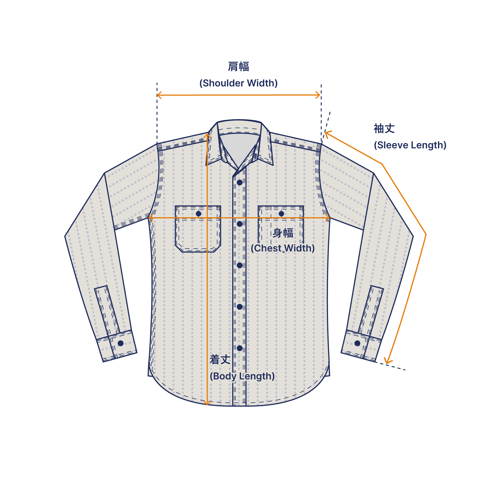 オリジナル10ozデニム生地にドットストライプ柄を施した特徴的なウォバッシュ生地のワークシャツ。 白いドット柄が見た目の柔らかさを与えてくれます。 見た目だけではなく、ディテールや経年変化にもこだわりを詰め込んだウォバッシュワークシャツは、着用を重ねることで現れる表情の変化も楽しめます。