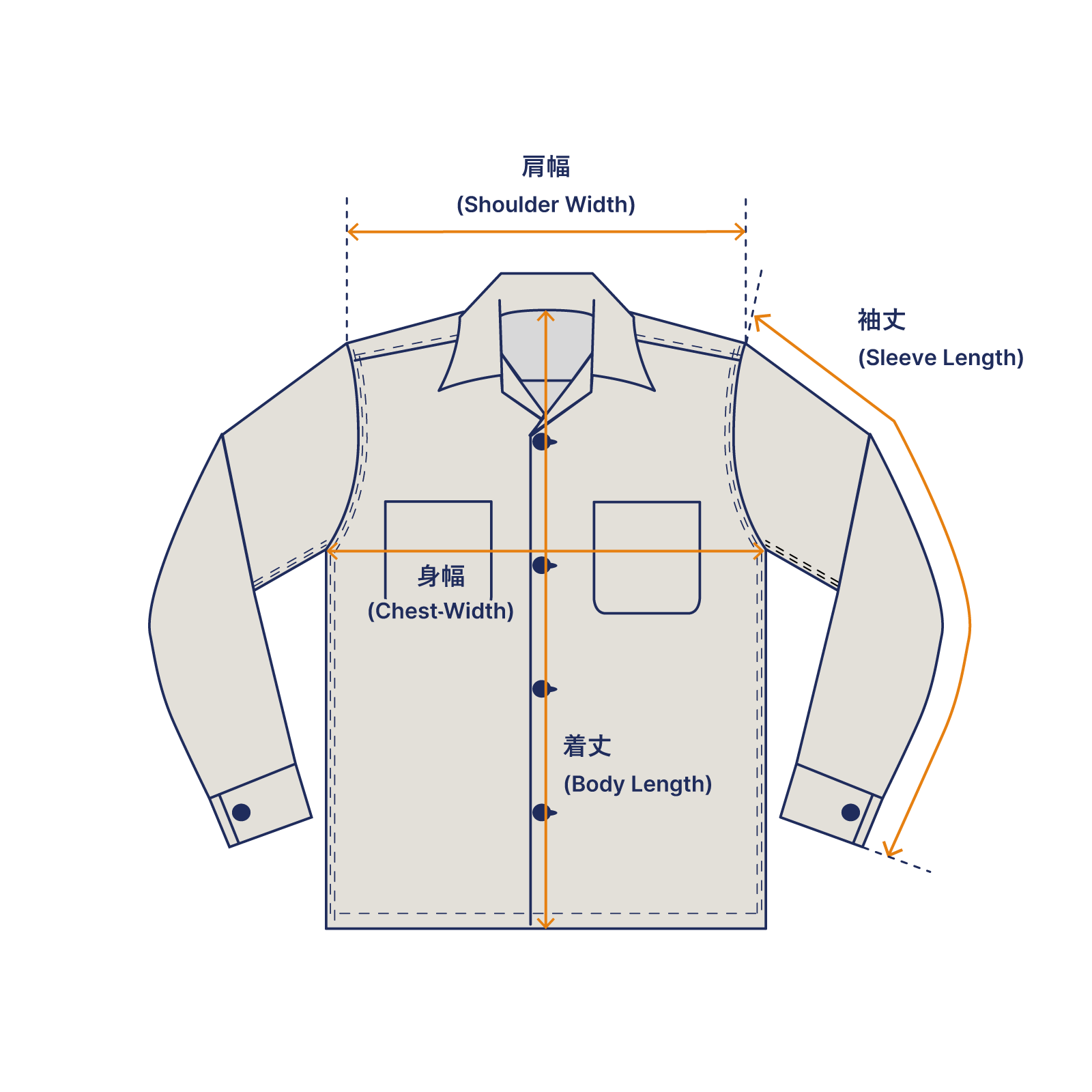 ・RAYON100% (旧式シャトル織機)・手捺染・高瀬貝ボタン・主要部巻き縫い・ワンウォッシュ・カラー:ブラック / ブラウン・サイズ:36(S) / 38(M) / 40(L) / 42(XL)