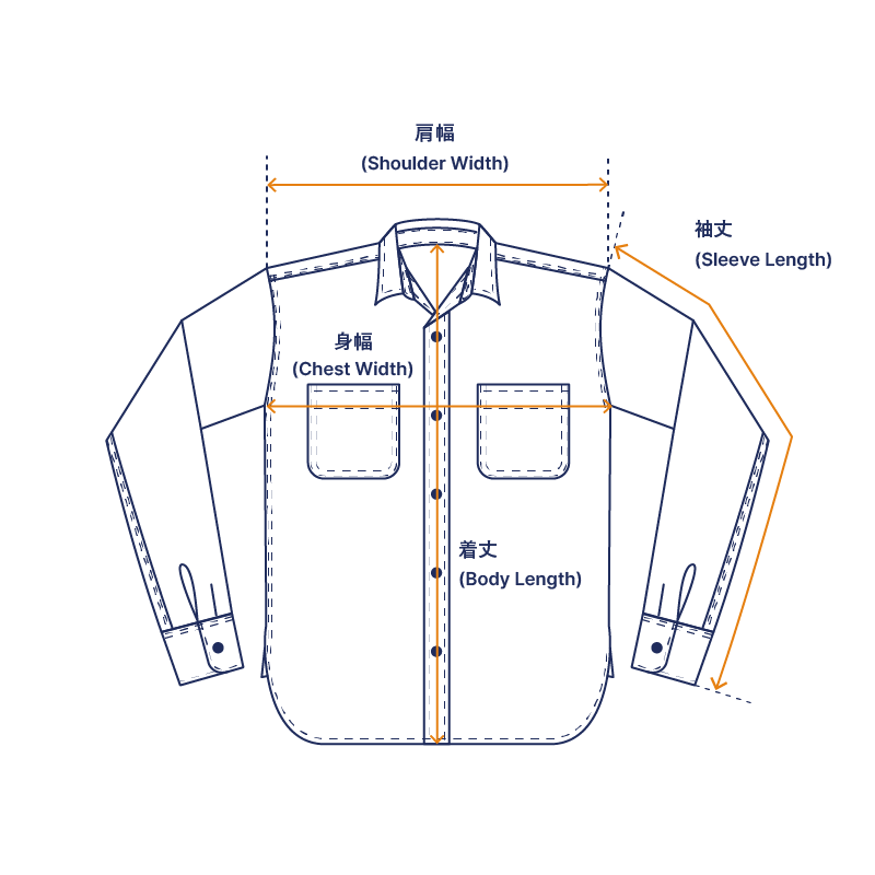 ・COTTON100%(旧式シャトル織機)・尿素ネコ目ボタン(手付け)・主要部巻き縫い・ワンウォッシュ・カラー:レッド×ブラック / マスタード×ベージュ・サイズ:36(S) / 38(M) / 40(L) / 42(XL) / 44(XXL)