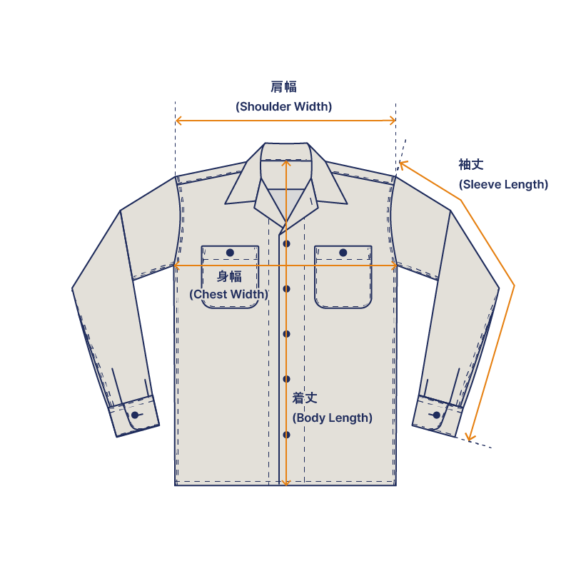 ・COTTON100% (旧式シャトル織機)・尿素ボタン・主要部巻縫い・ワンウォッシュ・カラー:オレンジ×ブルー / イエロー×ブラウン・サイズ:36(S) / 38(M) / 40(L) / 42(XL) / 44(XXL)