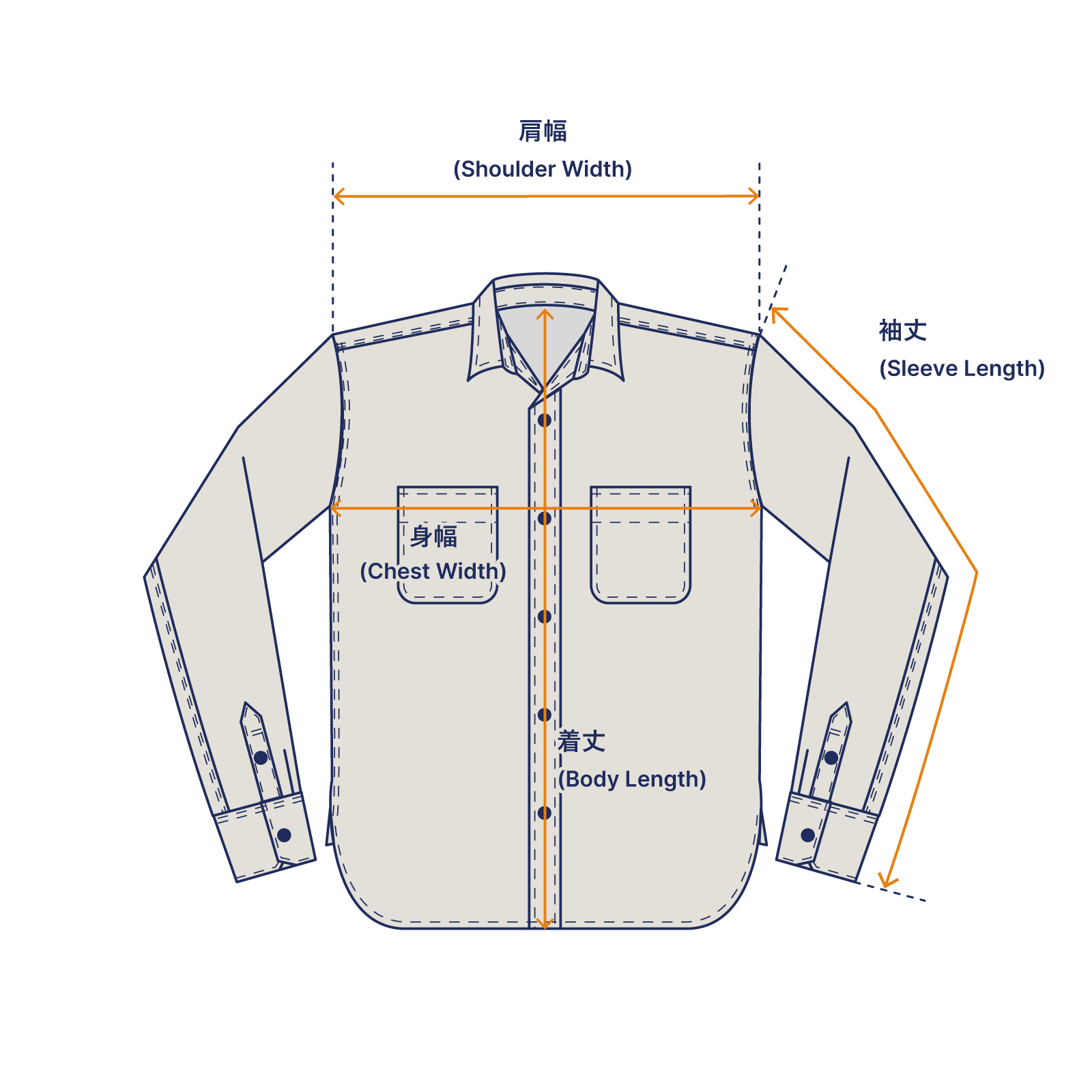 ・COTTON100%(旧式シャトル織機)・尿素ボタン・主要部巻縫い・ワンウォッシュ・カラー:レッド×ブラック / グリーン×ブラウン・サイズ:36(S) / 38(M) / 40(L) / 42(XL) / 44(XXL)