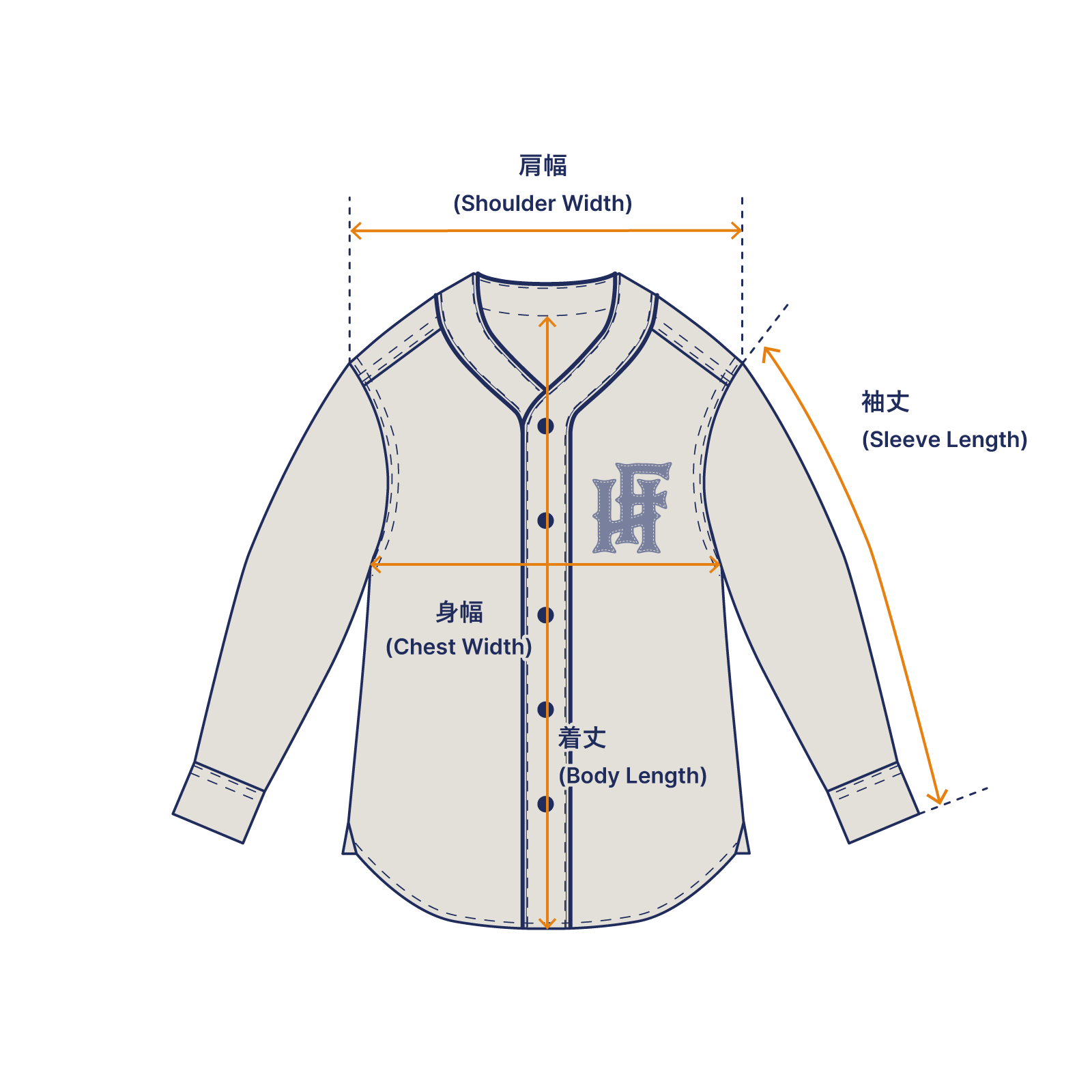 左胸に施されたブランドイニシャル「FH」を模ったフェルトパッチ。 チームロゴ風にデザインされたパッチは、ベースボールシャツらしさのあるデザインには欠かせない要素です。