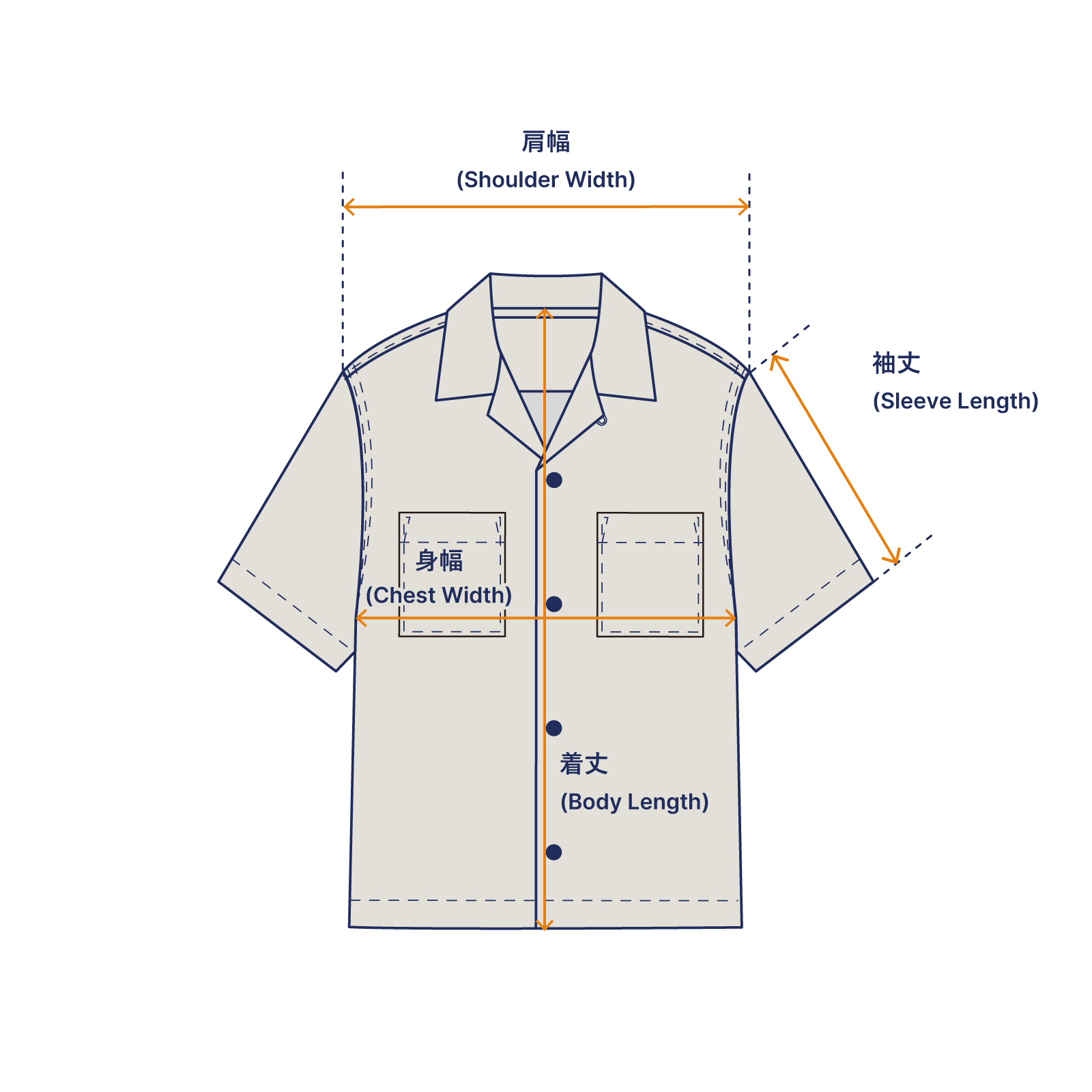 ・RAYON55% COTTON45%(旧式シャトル織機) ・ココナッツボタン・主要部巻き縫い・ワンウォッシュ・カラー:ホワイト×イエロー / ネイビー×ピンク・サイズ:36(S) / 38(M) / 40(L) / 42(XL)