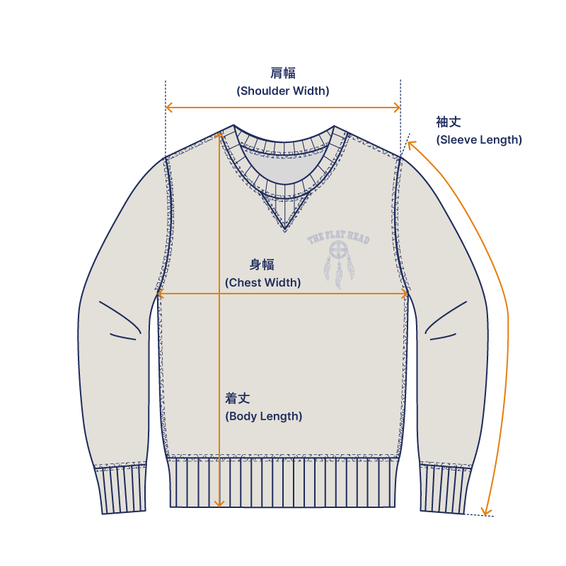 太番手の糸を使い編み上げたオリジナル生地を使用。 フラットヘッドで従来使用する糸よりも太い糸で編み上げることで、程よい生地の肉感とコシを出しています。裏面は裏起毛加工をほどすことで保温性が高く、吊り生地の持つフワッとした柔らかさをより引き立てています。 肉厚でコシがありながらも軽く柔らかな着心地が楽しめます。