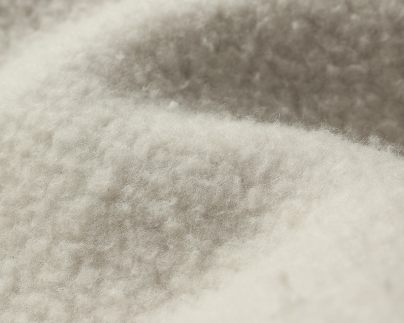 裏面は裏起毛加工をほどすことで保温性が高く、吊り生地の持つフワッとした柔らかさをより引き立てています。 肉厚でコシがありながらも軽く柔らかな着心地が楽しめます。