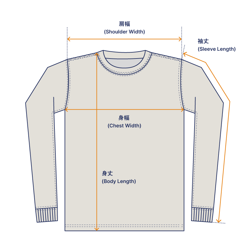 フラットヘッドのTシャツの最大の特徴ともいえる首元の縫製技法。 実在するヴィンテージTシャツの縫製から着想を得て、独自に改良を行った「3本針の1本外し®縫製」は伸びやすい首元に20番手の太いコットン糸を使用しています。 更にリブに2本、ボディに1本の合計3本のステッチで縫い上げることで、縫製技術とコットンの性質を利用し首元が伸びにくいTシャツを実現しました。 長年の着用でも首回りの伸びが出にくく、お気に入りのデザインを末永く楽しんでいただけます。