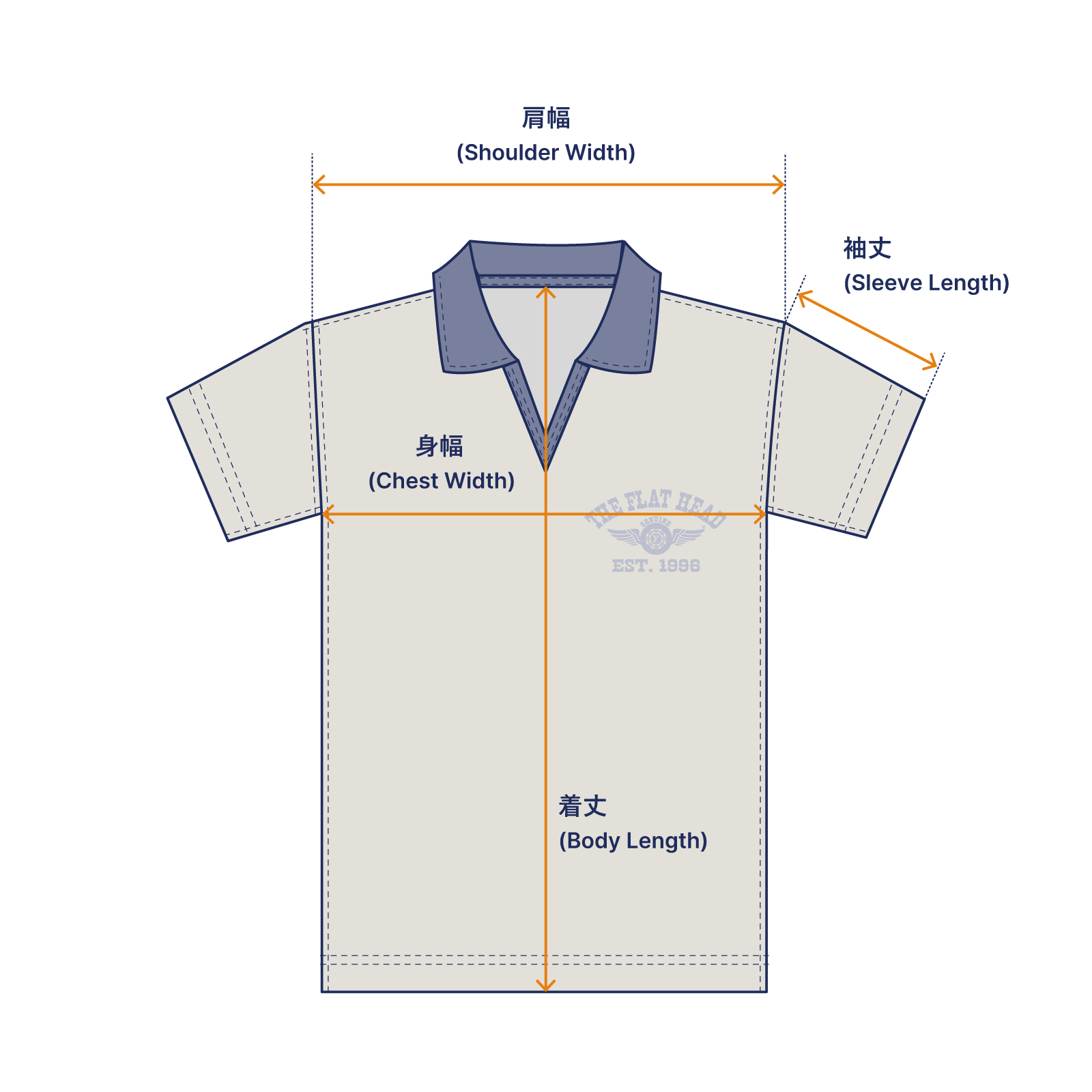 ・COTTON100%(度詰)・コーマ糸・プリント仕様:染み込みプリント(ホワイト×ブラック)、抜染プリント(ブラック×ホワイト、ネイビー×ブラック)・ワンウォッシュ・カラー:ホワイト×ブラック / ブラック×ホワイト / ネイビー×ブラック・サイズ:36(S) / 38(M) / 40(L) / 42(XL)