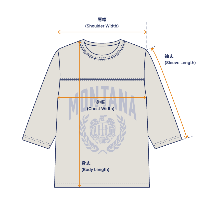 【ヴィンテージ感あるカレッジ風デザインのフットボールTシャツ】 架空の大学をイメージしデザインされたフロントのカレッジプリントが特徴的なフットボールTシャツ。 ネイティブアメリカンの部族、フラットヘッド族の居留地がモンタナ州にあることにちなんでデザインに取り入れています。