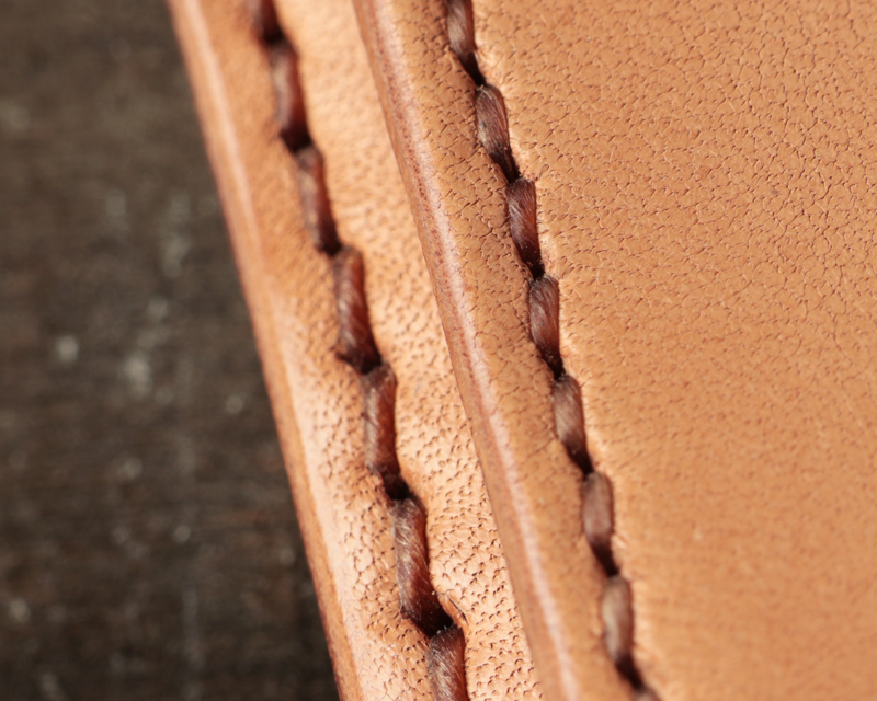 縫製は全て手縫いで仕上げています。 内装と外装で使用する縫製糸の太さを変え、見た目の良さ、強度を損なわないよう配慮したつくりになっています。