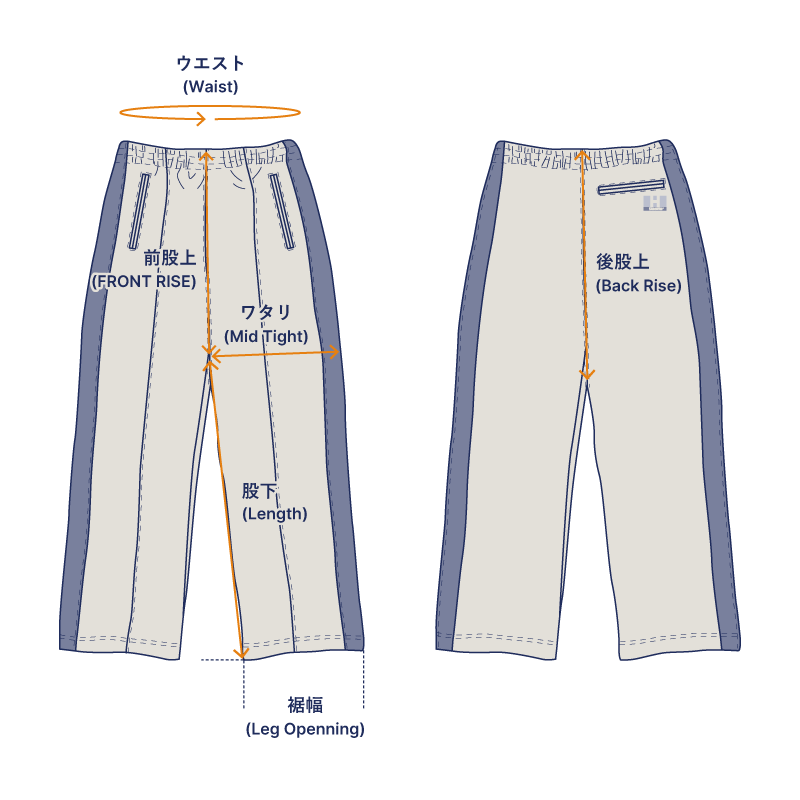 両サイドにはトラックパンツの特徴ともいえるサイドラインがデザインされ、カジュアル感のある仕上がりです。 ボディカラーとのギャップのあるカラーリングで、セットアップでの着用時も存在感が際立ちます。