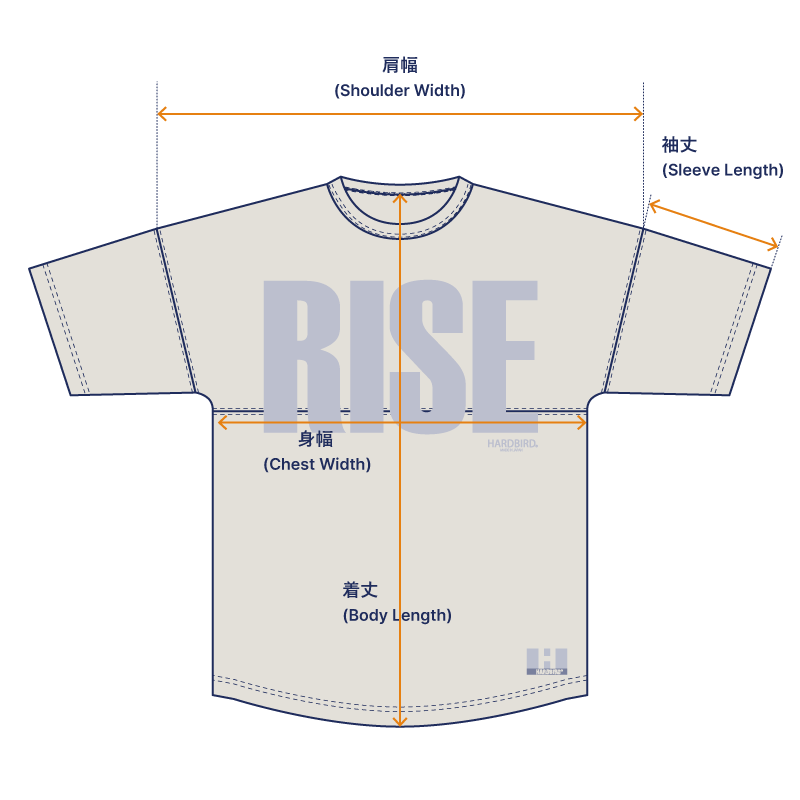 フロントにはゴールドでプリントされた大きな「RISE」のロゴ。 昇る、上がるといった意味を持つ言葉ですが、着ているだけで気分も上がってしまいそうな楽しさのあるデザインです。 楽しいひと時を過ごしたい!そんな時には欠かせない1着です。