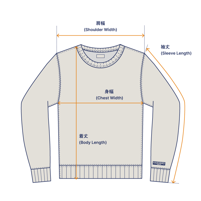 左袖口にはHARDBIRDのブランドタグが付きます。
