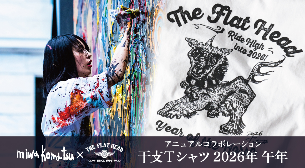 世界を股にかけ活躍中の現代アーティスト小松美羽さんがオリジナルで描きおろしたデザインを、フラットヘッドを代表するTシャツ「THCシリーズ」に落とし込んだ「小松美羽×THE FLAT HEAD」のコラボレーション干支Tシャツ。