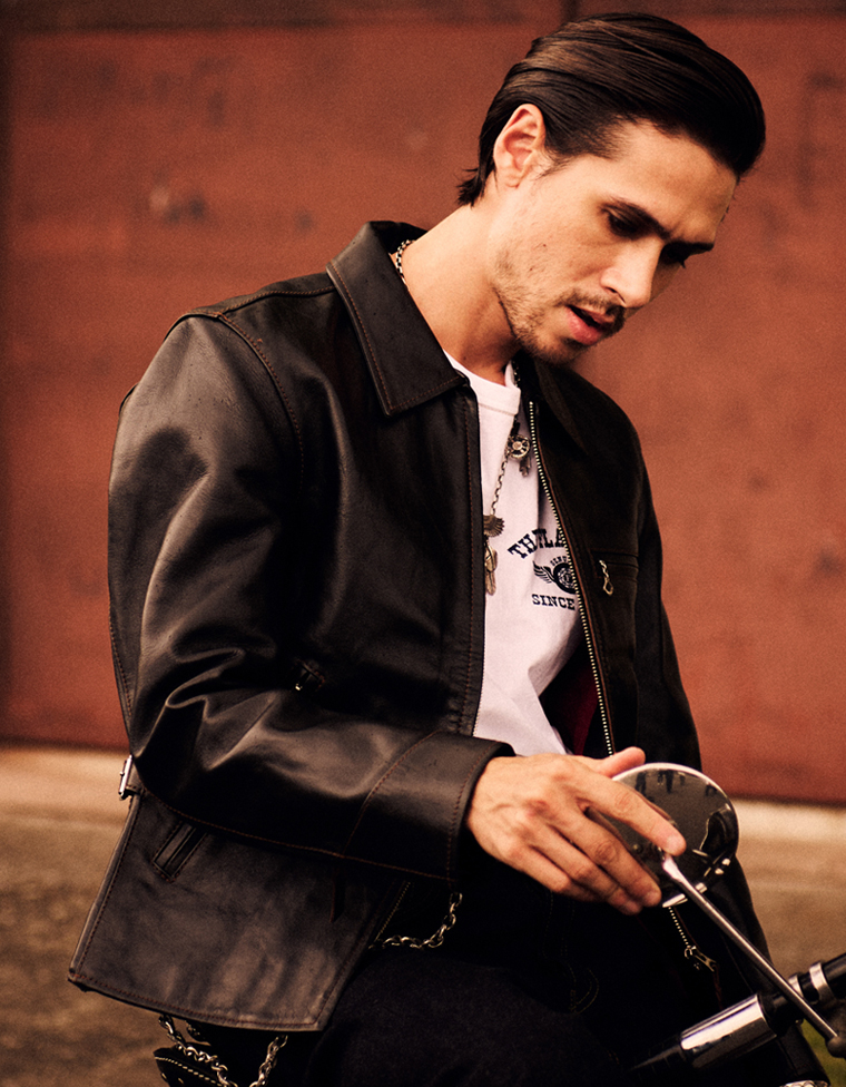 特集「ハーレー乗りが手に入れるべきレザージャケット」にて、フラットヘッドを象徴するディアスキンとホースハイドのプロダクトが紹介されています。