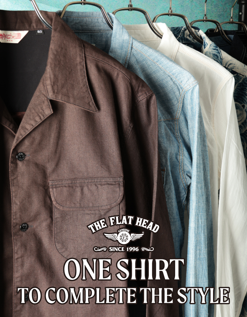 強靭なネックと丈夫なボディで作り上げたフラットヘッドを代表するTシャツ「THCシリーズ」 このシリーズ最大の特徴は、伸びにくいネック部を実現するために首元に施した「3本針の1本外し」と呼ばれる20番綿糸による縫製技術。